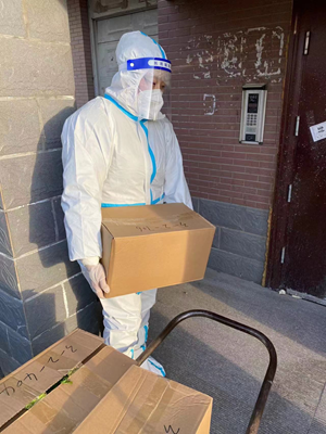 疫情期间,生活物资保障是重中之重。她们和其他志愿者组织的每一次生活物资的发放活动都是亲力亲为、共同动手,将团购的蔬菜、生活急需物资和药品送货上门,分发到各家各户。为了小区安全,也为了防止人群聚集,她们身为女同志也义无反顾地加入了排班巡逻,全方位保护小区安全。