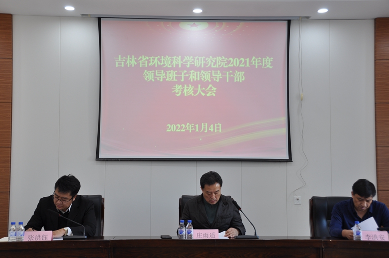 2022年1月4日,我院召开了全院干部职工大会,吉林省生态环境厅对我院领导班子及领导干部开展2021年度工作考核。会议由院党委副书记、副院长张洪钰主持,省厅考核组组长李洪安出席并就考核的总体安排和具体要求作了讲话,院党委书记、院长庄雨适代表领导班子全面总结了2021年的工作情况。
