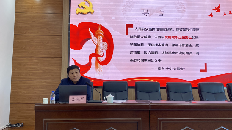 为进一步提高我院干部职工对纪检监察和监督执纪意识,有效增进对守正创新、正风肃纪和反腐倡廉等方面的了解和认识,2024年1月18日,我院党委邀请省生态环境厅直属机关纪委书记郑家军同志进行宣讲授课,会议由院党委副书记、副院长张洪钰主持,院全体党员干部参加了会议。