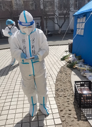 闻令而动,协力社区。年过五十的包丽艳、宫秀芳、尹根成同志均下沉所在社区,多次参与核酸检测秩序维护,协助居民采购物资的接收、消毒和运送,并组织统计楼栋核酸自测结果。路红军同志也在小区内参与社区核酸检测、抗原试剂盒发放、宣传疫情防控的科学做法等工作。史双铭同志参与到与单位对接的春城社区进行下沉工作,清晨上岗,承担起锦华庄小区的管控值守、消毒登记、帮助居民运送物资等任务。